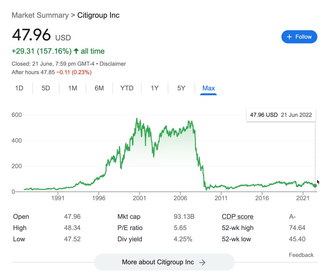 Take Citigroup for example. A massive financial services powerhouse with over 220,000 employees globally, that generated $19bn in revenues in the March, 2022 quarter.