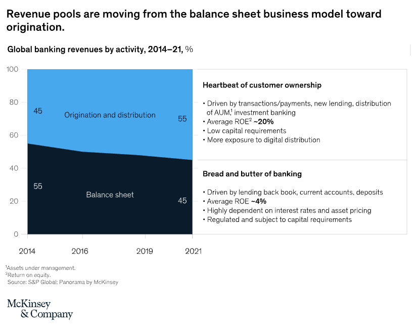 Why wouldnât you when you can achieve 20% ROE for shareholders in origination and distribution compared to a lousy ~4% in deposits and managing lending portfolios?